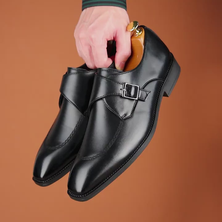 Diese Herren Leder Monk Strap-Schuhe bieten ein raffiniertes und elegantes Design, das perfekt für jede formelle Gelegenheit geeignet ist. Aus hochwertigem Leder gefertigt, verfügen sie über einen markanten Einzelmonk-Design mit einer polierten Schnalle. Bequem und langlebig verbinden diese Schuhe zeitlosen Stil mit modernem Komfort und eignen sich sowohl für Geschäfts- als auch für besondere Anlässe.