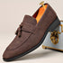 Diese Herren Wildleder Slipper kombinieren eleganten Stil mit Komfort. Mit einem klassischen Slip-On-Design und dekorativen Quasten sind diese Schuhe perfekt geeignet, um jedem Outfit einen Hauch von Raffinesse zu verleihen. Das weiche Wildleder sorgt für ein luxuriöses Gefühl, während die bequeme Passform sie ideal für legere und halbformelle Anlässe macht.
