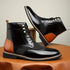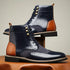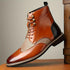 Diese Herrenstiefel in zweifarbiger Ausführung verbinden erstklassige Handwerkskunst mit zeitlosem Stil. Die Kombination aus glattem Leder und strapazierfähigem Gewebe schafft ein einzigartiges, modernes Erscheinungsbild, das sich sowohl für festliche als auch für legere Anlässe eignet. Mit klassischer Schnürung und robuster Sohle bieten diese Stiefel Komfort und Raffinesse für jedes Outfit.